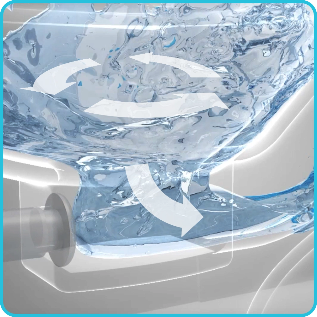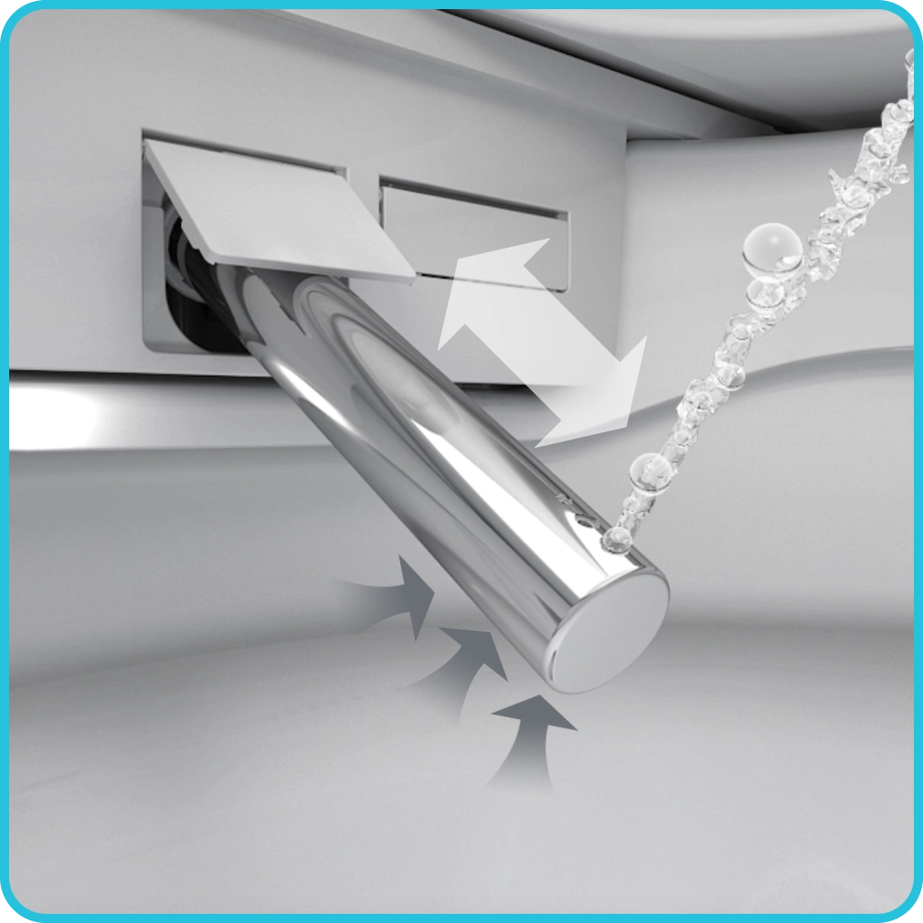 The wash nozzle infuses microscopic bubbles to oxygenate the water flow at the cleansing area, giving a spa-like feel.